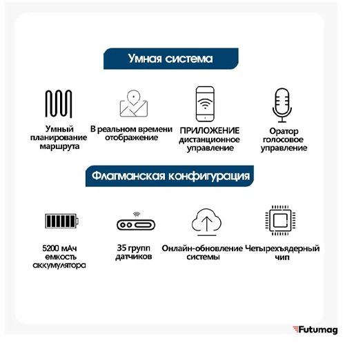 - Новый модернизированный чип, быстро определяет точное местоположение и задаст траекторию уборки