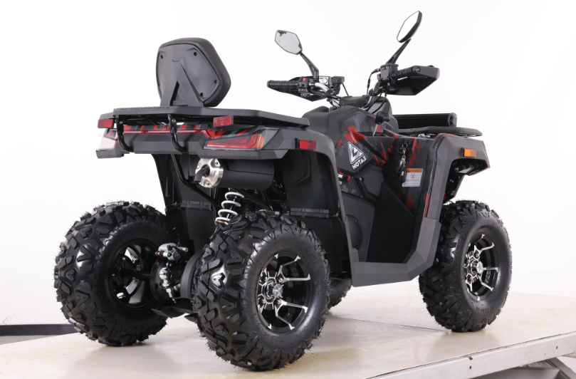 Передняя маятниковая (рычажная) подвеска обеспечивает отличную амортизацию, что особенно важно на неровных и сложных маршрутах. С дорожным просветом в 150 мм и высотой по сидению 800 мм, квадроцикл подходит для пользователей ростом от 150 см, что делает его доступным для широкой аудитории.