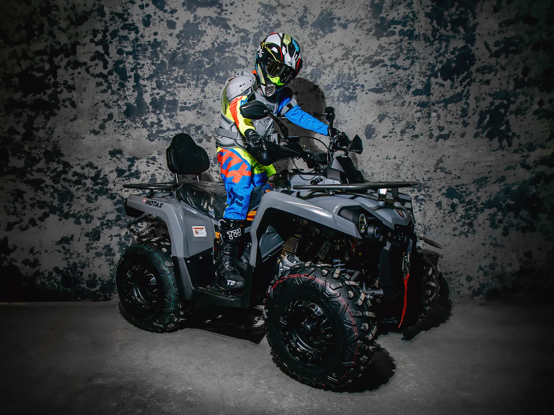 Квадроцикл оборудован четырехтактным двигателем, трансмиссией вариаторного типа с передачей заднего хода, большими передними 10-дюймовыми колёсами, внедорожными шинами с развитыми грунтозацепами.