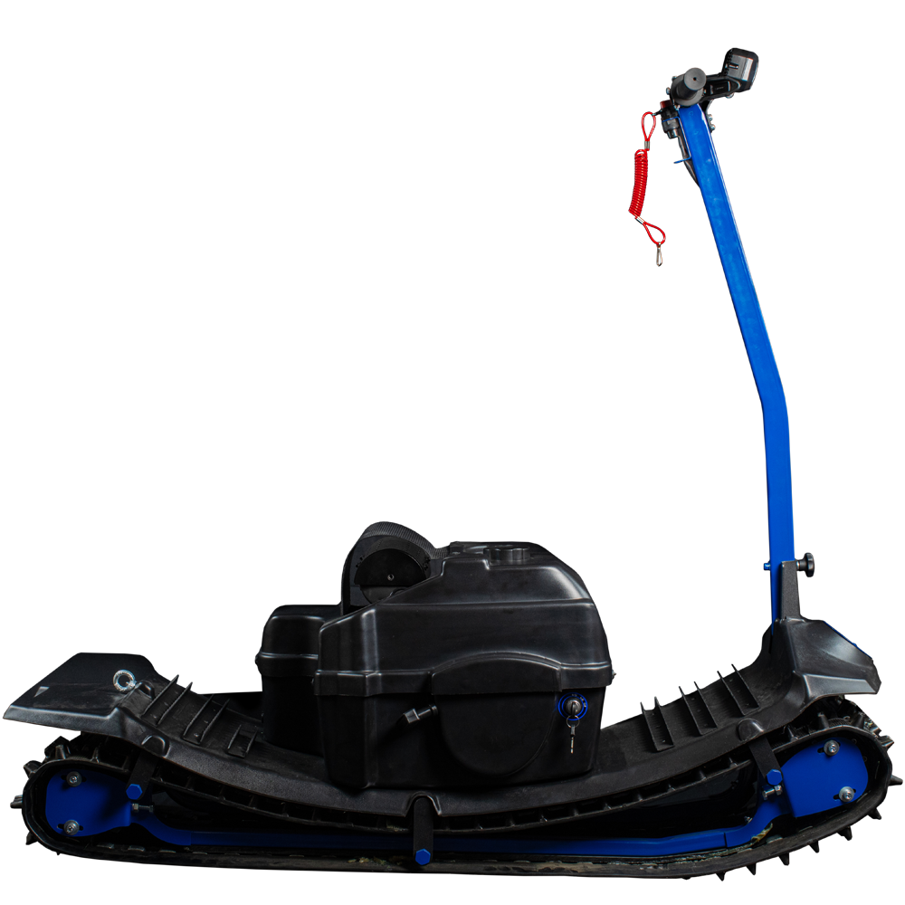 Sibmaster Drive оснащен системой подвески для комфортного и безопасного передвижения, а складная конструкция облегчает хранение и транспортировку мотосноуборда. Уровень подготовки для использования этого устройства может быть любой, от новичка до профессионала.