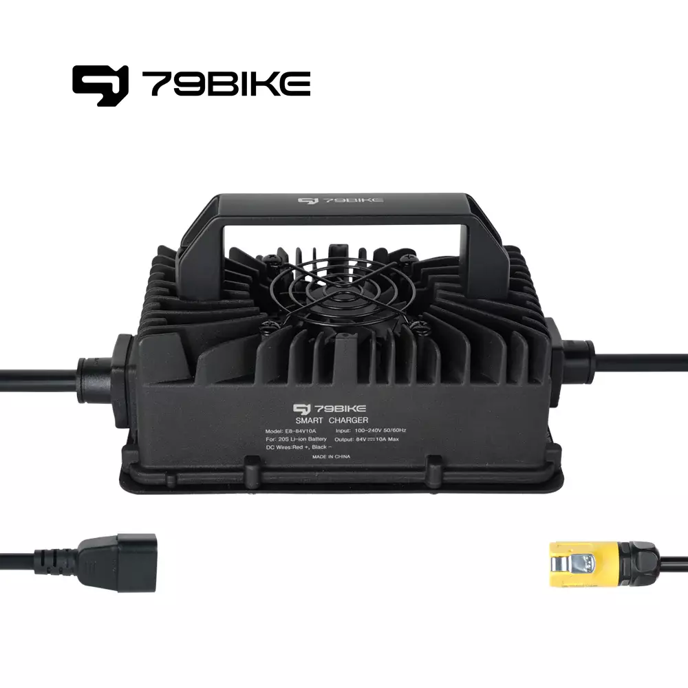 С зарядным устройством 79Bike 84V10A вы сможете уверенно заряжать аккумулятор своего электровелосипеда, зная, что он всегда готов к новым приключениям.