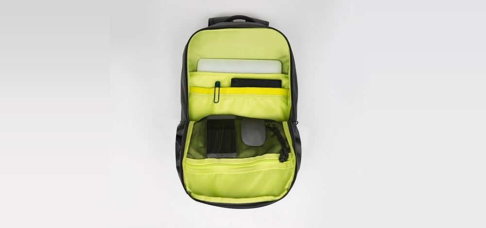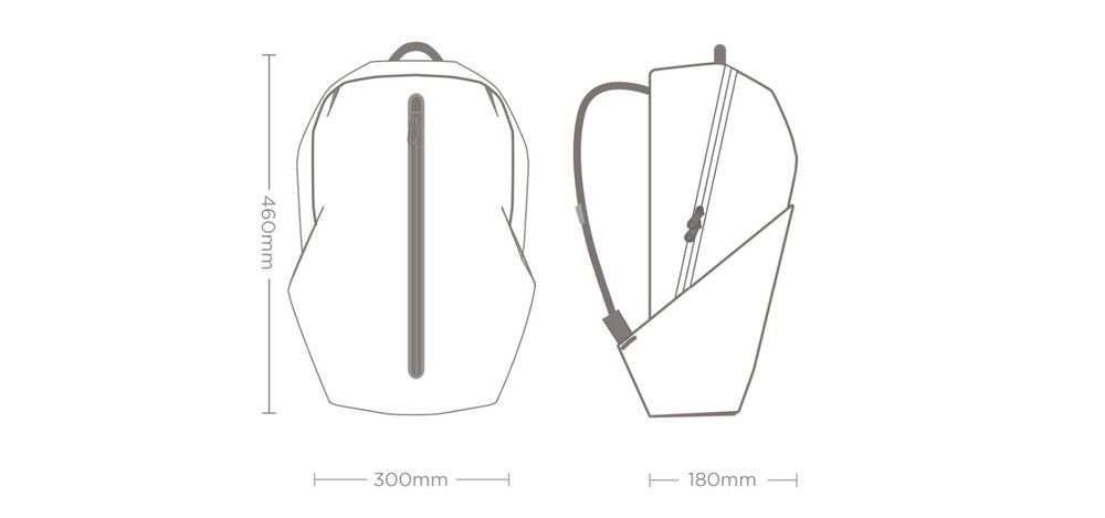 Для переноски тяжелого груза в комплекте съемные ремни (нагрудный и поясной). Для вывода кабеля переносного аккумулятора или наушников предусмотрено скрытое отверстие с левой стороны. Внутри имеются отделения для вещей, очков, смартфона, планшета, ноутбука (до 14,1 дюйма), сетчатый карман для мелких предметов. Снаружи – потайной боковой карман для бутылки или зонтика.
