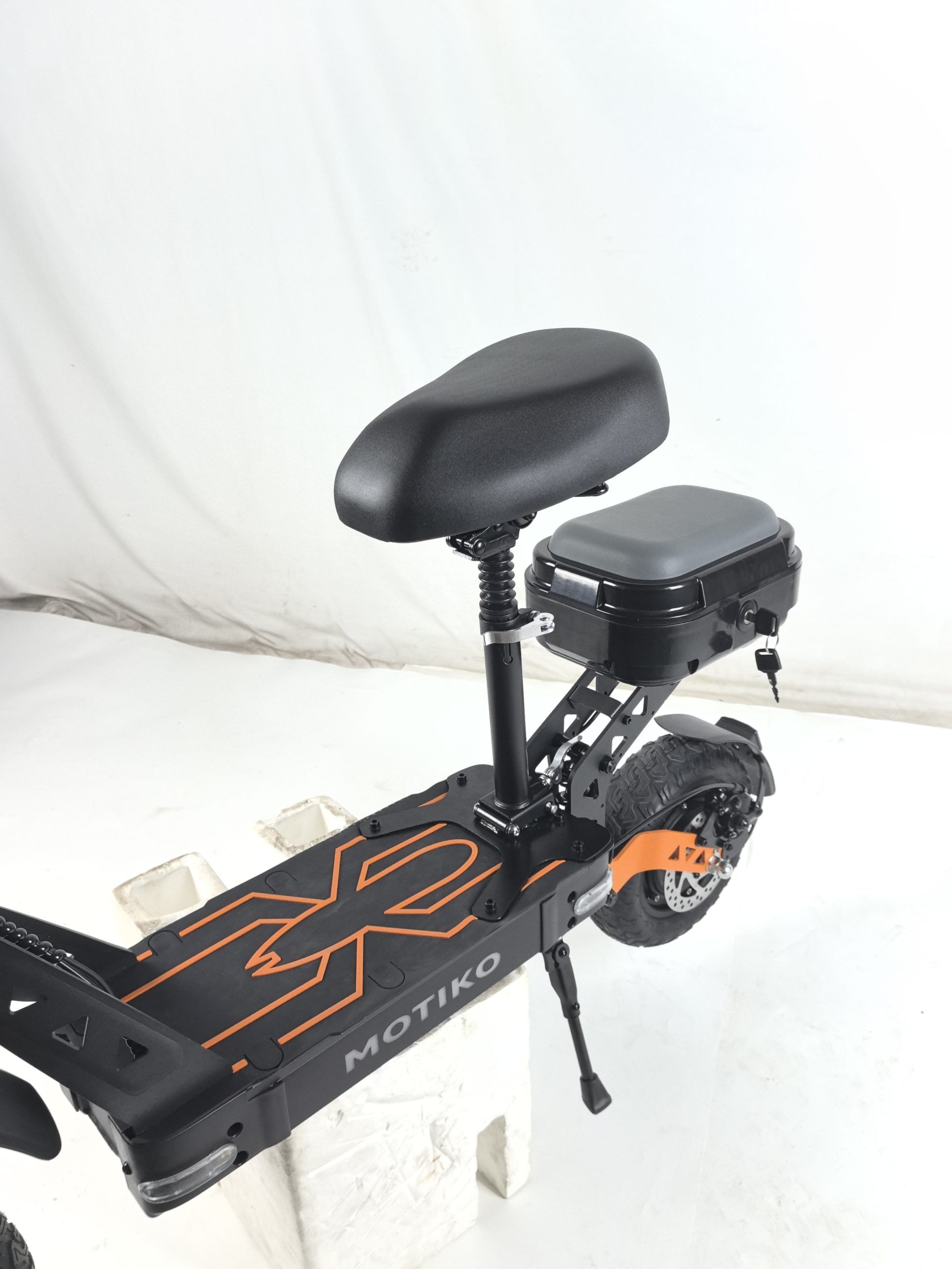 MOTIKO G1 оборудован дисковыми тормозами на переднем и заднем колёсах, что гарантирует надёжное и предсказуемое торможение в любую погоду. Дисковые тормоза меньше страдают от грязи, пыли и воды, поэтому они сохраняют эффективность даже при езде по мокрому асфальту или в небольшой дождь. Такая система позволяет быстро остановиться в экстренной ситуации и сокращает тормозной путь, что особенно важно в плотном городском трафике. Вы можете быть уверены: самокат послушно замедлится именно тогда, когда это нужно.