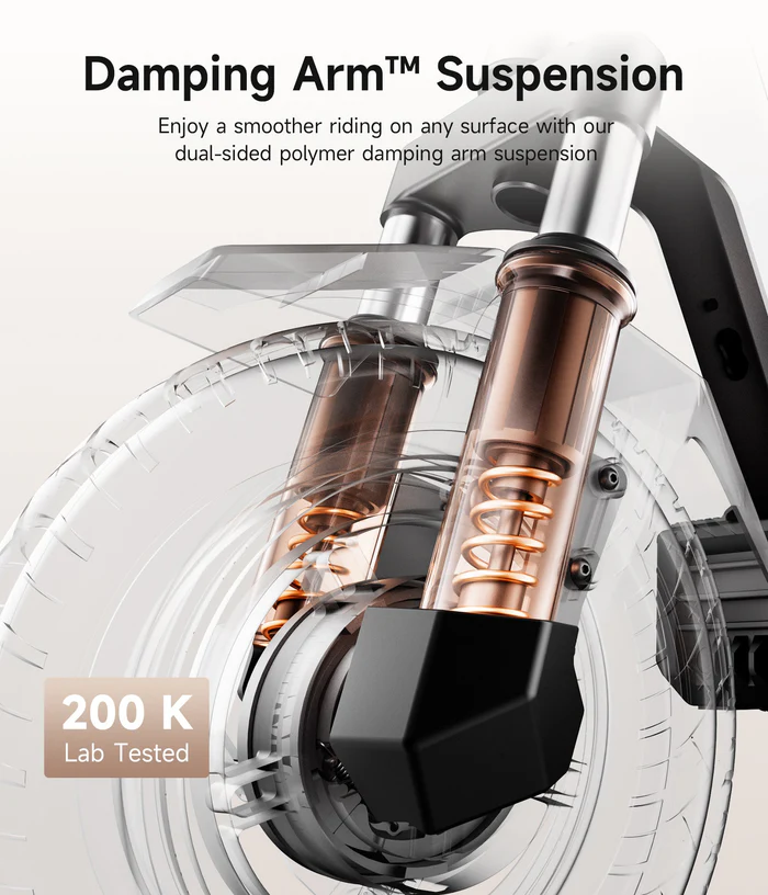Двухточечная подвеска в сочетании с 10-дюймовыми бескамерными шинами делает каждую поездку плавной и комфортной, снижая утомляемость водителя. Складная конструкция позволяет легко транспортировать самокат в общественном транспорте или хранить в ограниченном пространстве. Вес 20 кг делает процесс переноски вполне комфортным для большинства пользователей.
