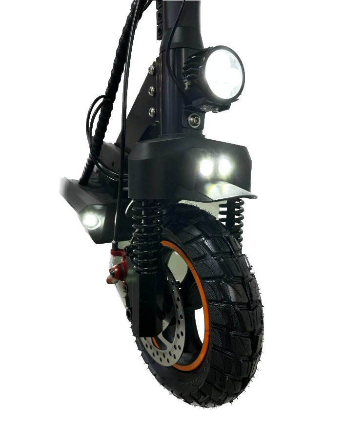 Передняя и задняя пружинная подвеска с амортизаторами обеспечивают плавность хода даже по разбитым дорогам, стыкам асфальта и брусчатке. Спортивный режим позволяет раскрыть весь потенциал 800-ваттного двигателя для максимальной динамики и быстрого ускорения. Светодиодная светотехника с функцией стоп-сигнала повышает безопасность в темное время суток и делает самокат заметным для других участников движения.