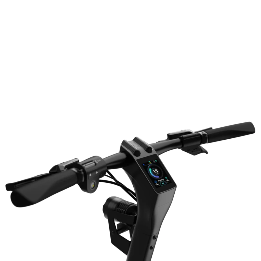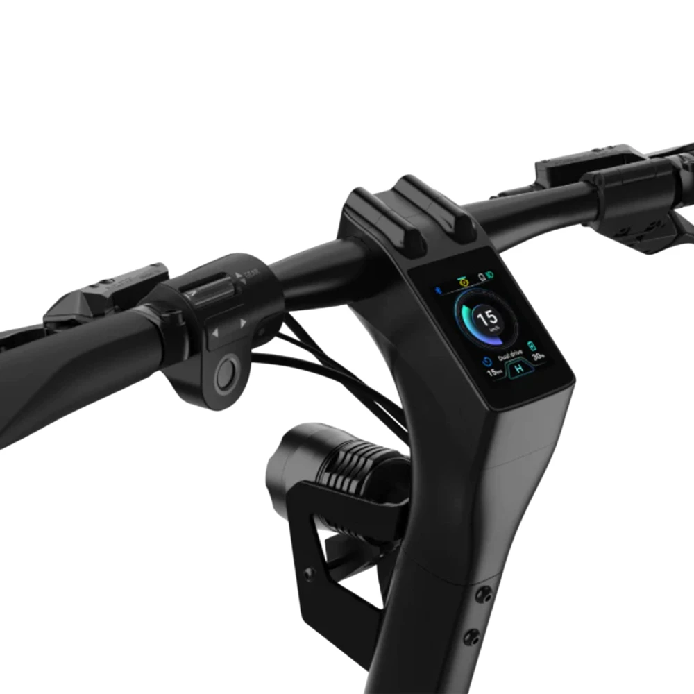 Многофункциональный цветной дисплей предоставляет всю необходимую информацию о скорости, уровне заряда аккумулятора и других важных параметрах, делая управление самокатом более удобным. Линзованная фара обеспечивает отличную видимость в темное время суток, что дополнительно повышает безопасность и уверенность во время поездок.