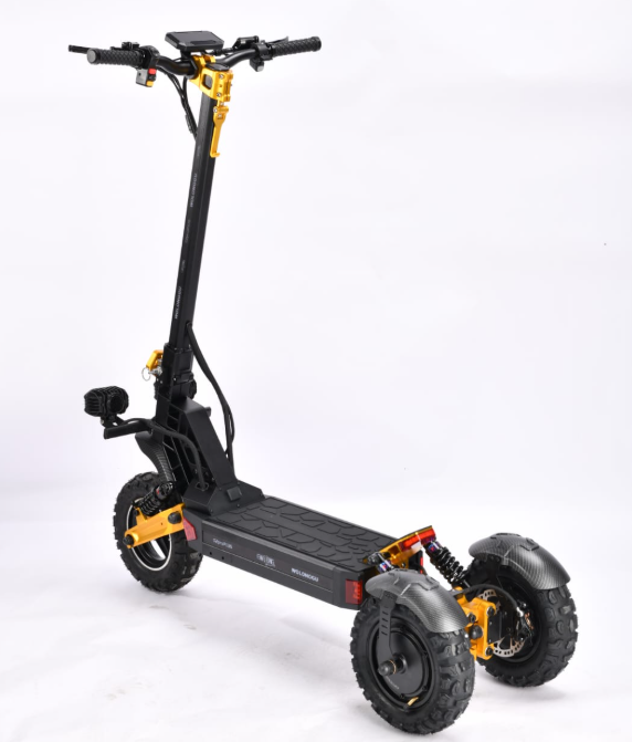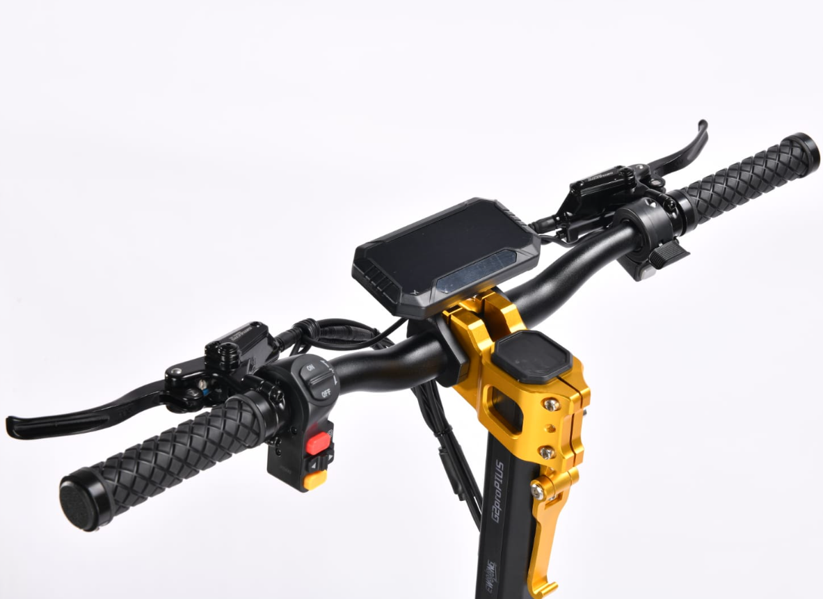 Под двумя передними колёсами спрятаны два независимых электродвигателя. Вместе они выдают колоссальные 2400 Вт мощности. На практике это означает одно: у этого самоката всегда есть запас сил. С таким полным приводом вы с лёгкостью трогаетесь с места, даже в гору или на сыром газоне. Разгон до максимальных 70 км/ч происходит быстро и плавно, без рывков.