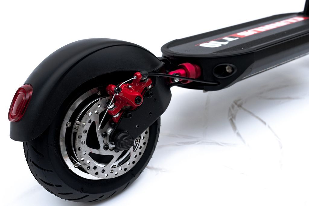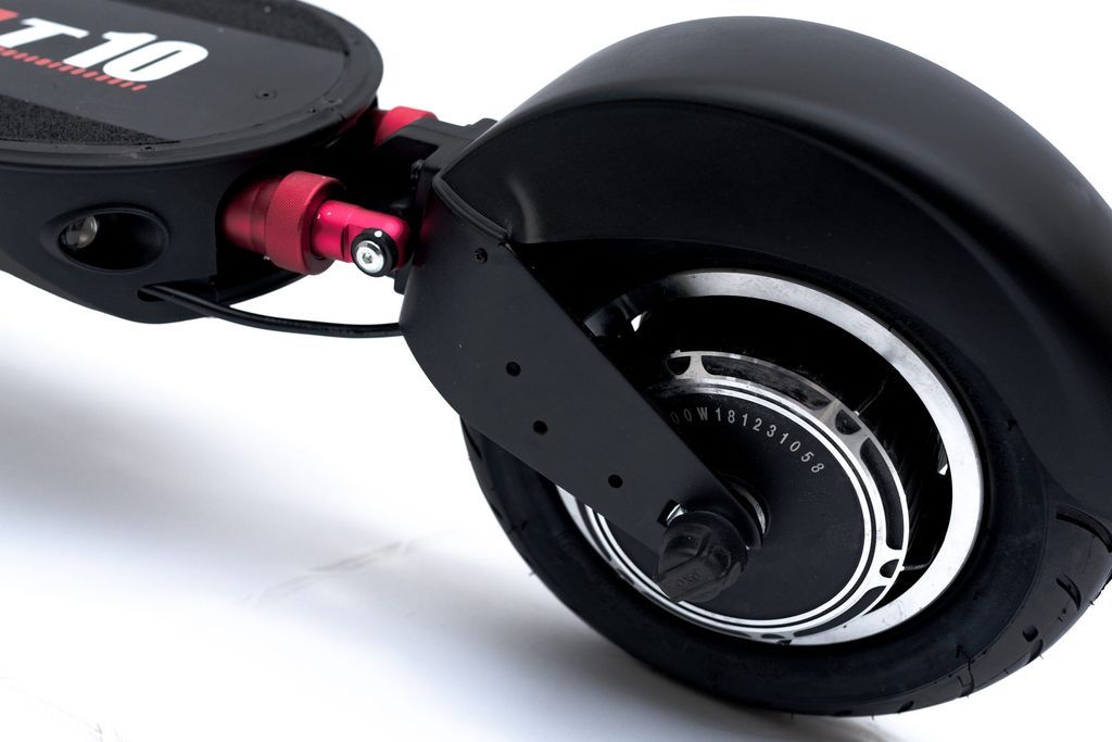 На самокате Currus T10 установлено 10-дюймовое 600 Вт мотор-колесо. С пиковой мощностью до 900 Вт. Это обеспечивает уверенное ускорение и экономию батареи при езде по прямой.