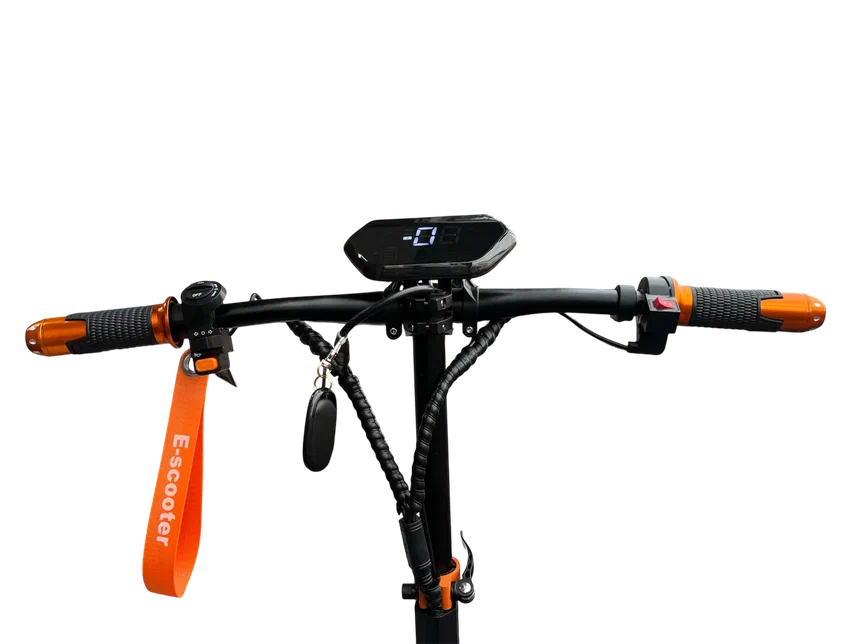 Дисплей на руле отображает текущую скорость и уровень заряда батареи, что позволяет вам всегда быть в курсе состояния вашего транспортного средства и избегать неожиданных остановок.