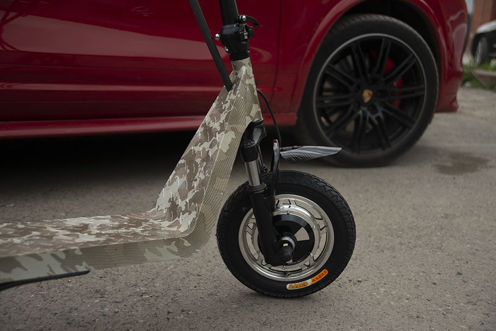 - Небольшой вес и складной руль позволяют перевозить электросамокат в багажнике автомобиля или в общественном транспорте. А так же без проблем заносить его в квартиру или офис.