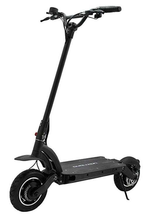 У этого электросамоката фирменная эластомерная подвеска от Minimotors. Она располагается спереди и сзади, обеспечивая комфортную поездку в условиях бездорожья. Высокий клиренс (14 см) и дополнительная защита от ударов снизу деки — плюс к внедорожному характеру устройства.