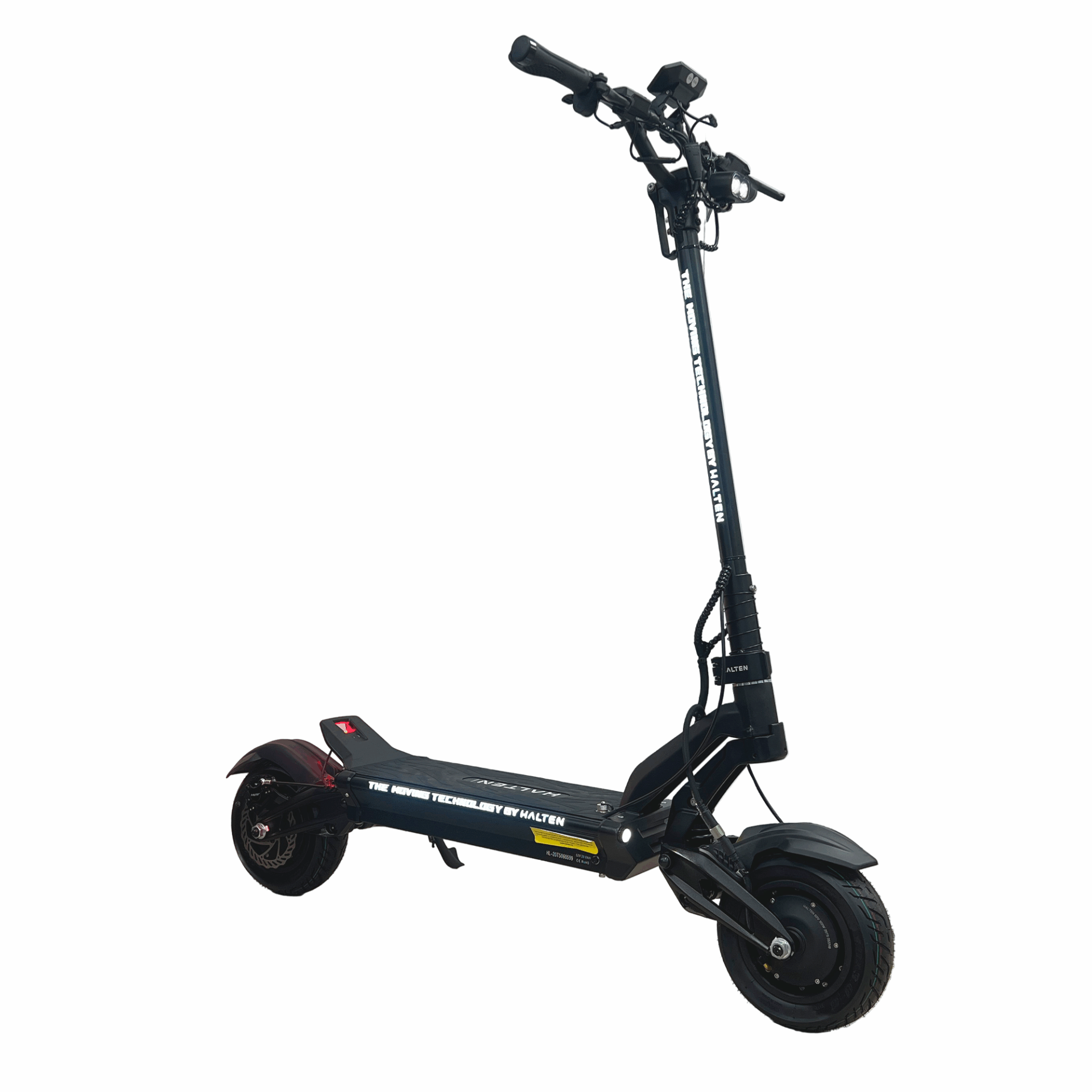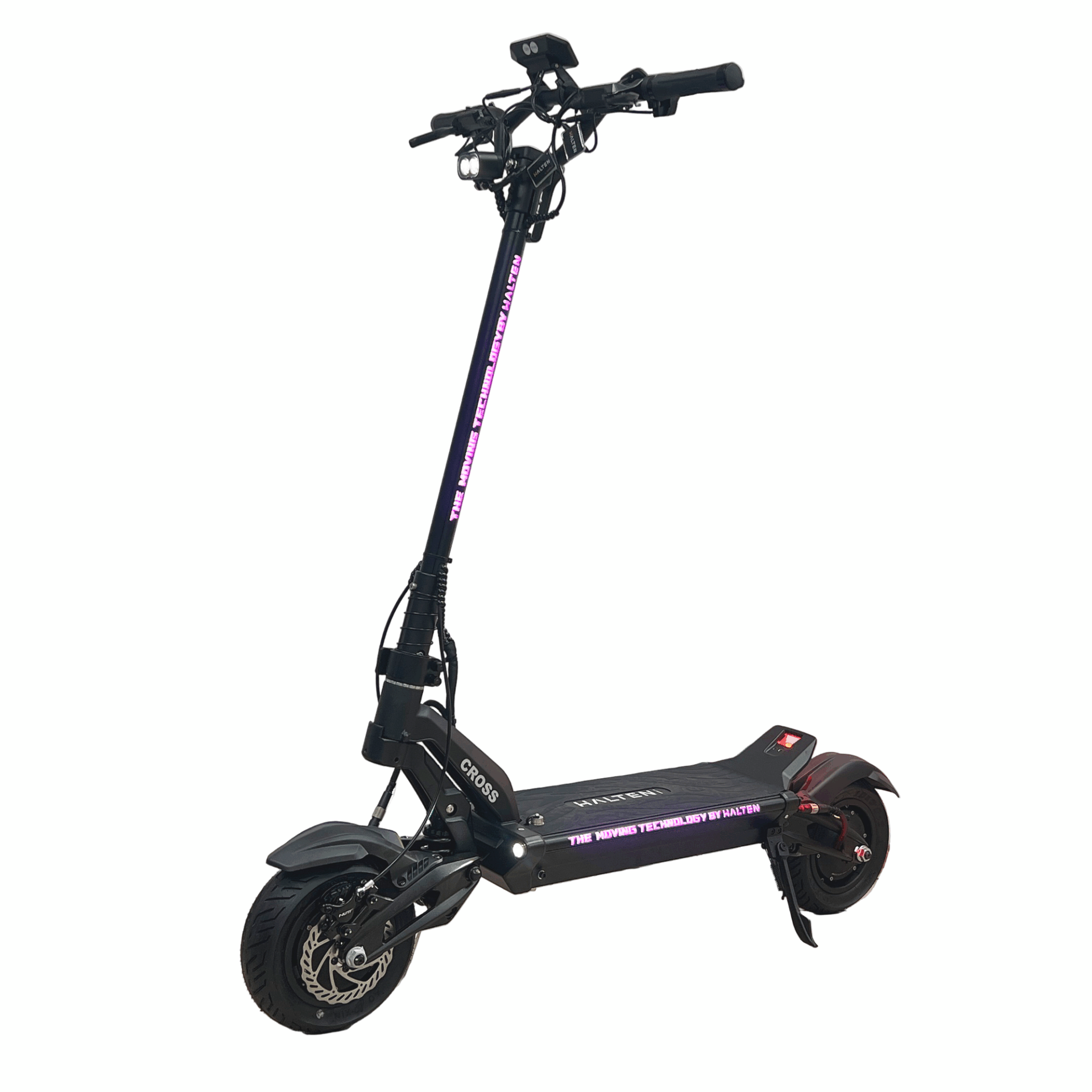 Электросамокат Halten Cross V3 PRO выделяется своим современным и привлекательным дизайном, который дополнен декоративной подсветкой. Это не только придает самокату стильный вид, но и улучшает видимость в темное время суток, повышая безопасность во время поездок. Освещение передней и задней части самоката помогает вам чувствовать себя уверенно на дороге.