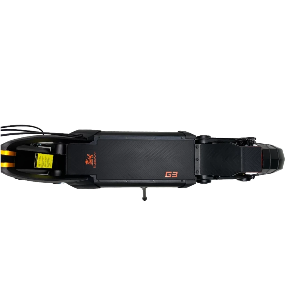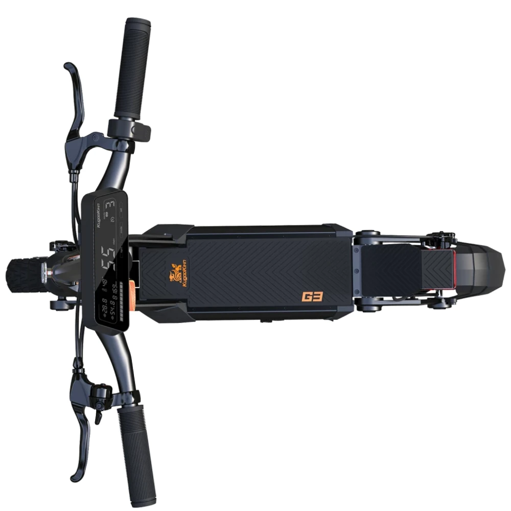 KUGOO G3 выделяется своим уникальным дизайном и многофункциональным дисплеем. Внедорожные покрышки позволяют уверенно передвигаться по гравию и легкому бездорожью. Широкая прорезиненная дека обеспечивает комфортную езду, а встроенные передние фонари и задние поворотники повышают безопасность в темное время суток. Самокат предлагает три режима освещения для различных условий видимости.