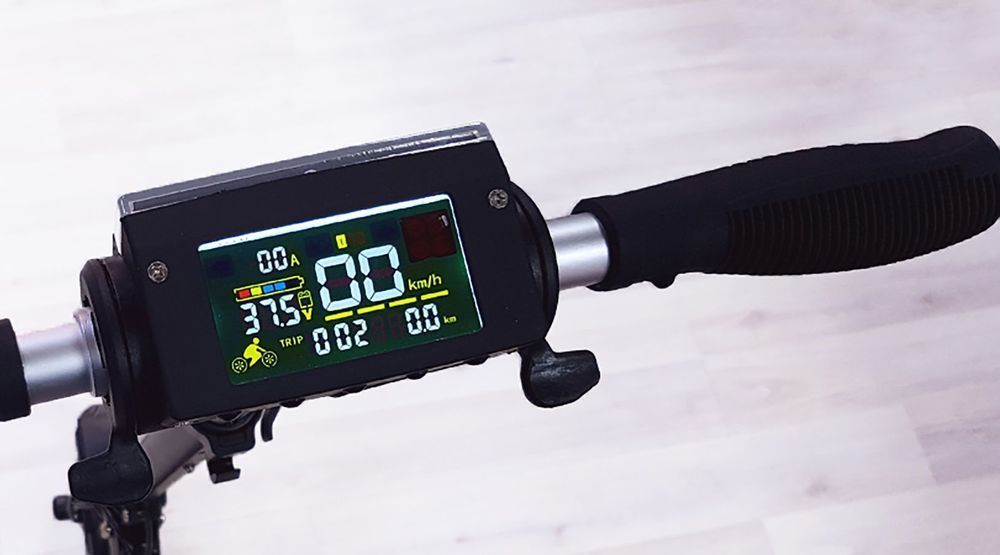 - Информативная панель бортового компьютера, на которой отображаются сразу все необходимые данные (текушая скорость, скоросткой режим, заряд аккумулятора)