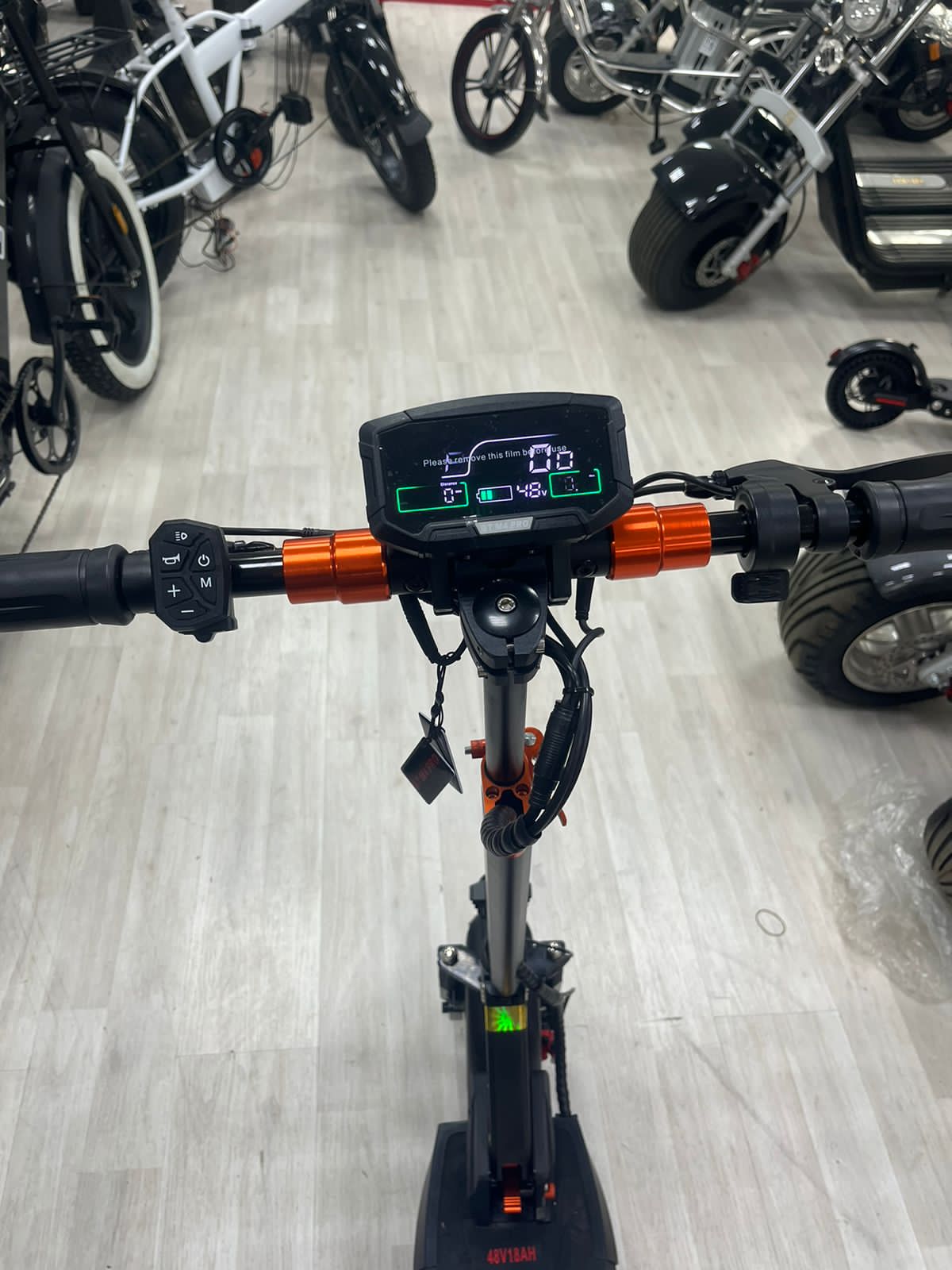 Самокат оснащен новым TFT дисплеем , на дисплее расположен одометр, спидометр, уровень заряда батареи и скорость. Самокат можно заблокировать по паролю или NFC ключом!