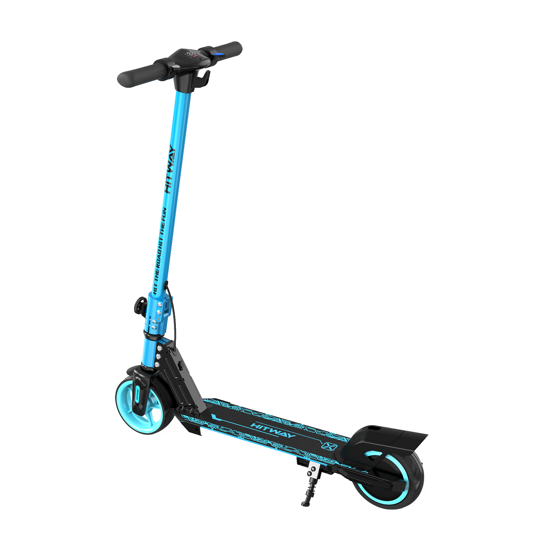 HITWAY W12 предлагает ряд дополнительных функций, таких как Bluetooth, который позволяет подключать устройства для прослушивания музыки во время поездки. Откидной переключатель делает управление самокатом более удобным, а боковая подставка позволяет легко парковать его в любом месте. Отсутствие сиденья делает конструкцию более легкой и маневренной.