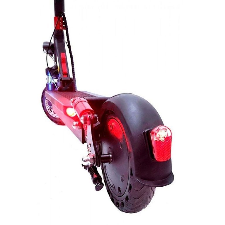 - За безопасность движения при плохом освещении отвечает встроенные светодиодные фонари на рулевой стойке и деке.
