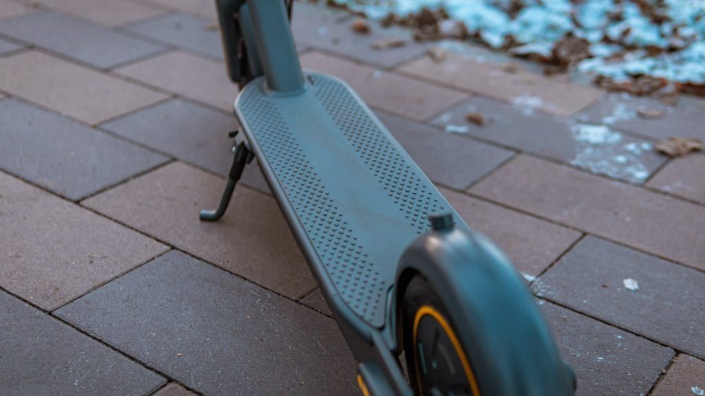 Корпус электросамоката Kingsong сделан из прочного алюминия, такое решение способствует небольшому весу в сравнении с конкурентами, всего 18.6 кг. Широкая дека позволяет комфортно разместить обе ноги, она покрыта прорезиненной поверхностью для лучшей устойчивости райдера. Снизу деки, располагается подножка для парковки.