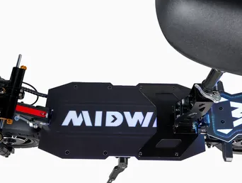 MIDWAY Ranger оснащён амортизацией спереди и сзади, что значительно повышает комфорт при езде по неровным поверхностям. Наличие сиденья добавляет удобства во время длительных поездок, позволяя расслабиться и наслаждаться поездкой.