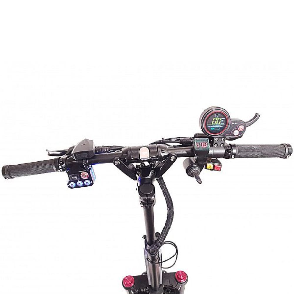 Модель имеет потрясающую амортизационную систему, которая сглаживает все неровности на дороге, делая вашу поездку более плавной. Установленные пневматические колёса диаметром 11 дюймов с глубоким протектором позволят ездить даже по бездорожью. Весит электротранспорт 47 килограмм, а благодаря прочной алюминиевой раме, он устойчив к различным механическим повреждениям. Максимальная грузоподъёмность электрического самоката – до 150 килограмм.