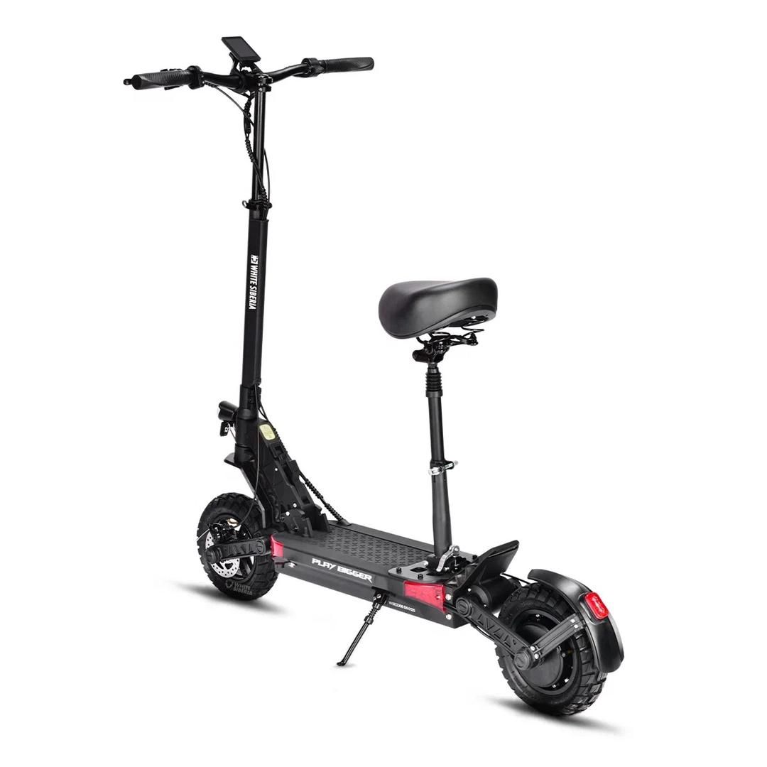 В остальном, это все тот же универсальный и комфортный электросамокат, способный удовлетворить потребности практически любого неискушенного пользователя. Среди преимуществ наличие подвески как спереди, так и сзади, аккумулятор 48 В 18Ач, седло идущее в комплекте и регулируемый по высоте, да еще и складной, руль. А связка мотор-контроллер позволит разгоняться до 45км/ч и проезжать на первой скорости до 45 км.