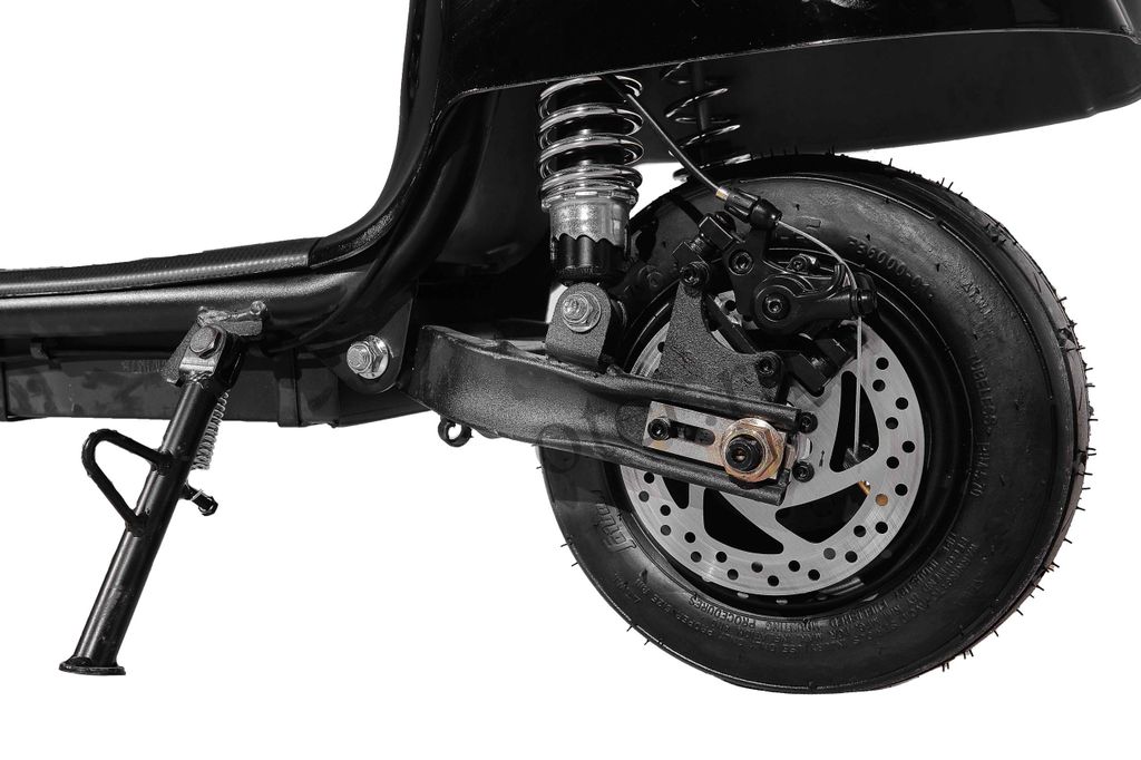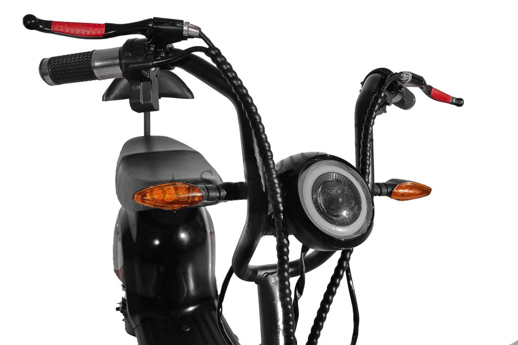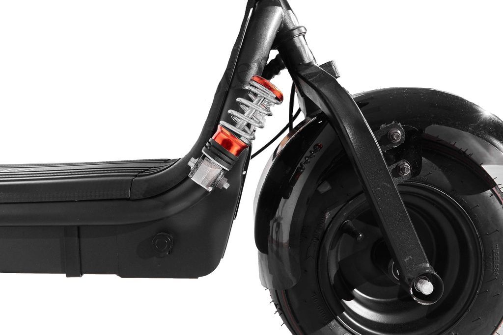 Электроскутер Citycoco GT X4 — электроскутер с двойным сиденьем. Модель создана для комфортного передвижения в городских условиях. Максимальная скорость достигает 35 км/ч, а пробег на одном заряде составляет до 30км. Для безопасной остановки в электроскутер Citycoco встроена тормозная система. Она состоит из дискового и гидравлического тормоза. Смягчают тряску от неровных дорог надувные колеса и амортизаторы. Максимальная нагрузка на модель — 120 килограммов.