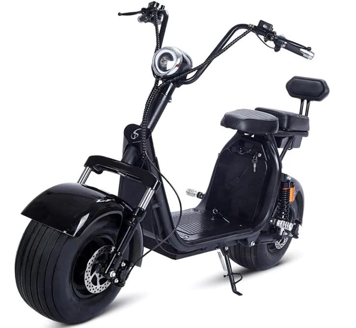 Электроскутер выполнен в стильном черном цвете и изготовлен из прочной стали, что придает ему современный и привлекательный вид. Диаметр колес составляет 18 дюймов, что обеспечивает отличную маневренность и устойчивость на дороге. Клиренс (дорожный просвет) составляет 18 см, что позволяет уверенно передвигаться по неровным участкам.