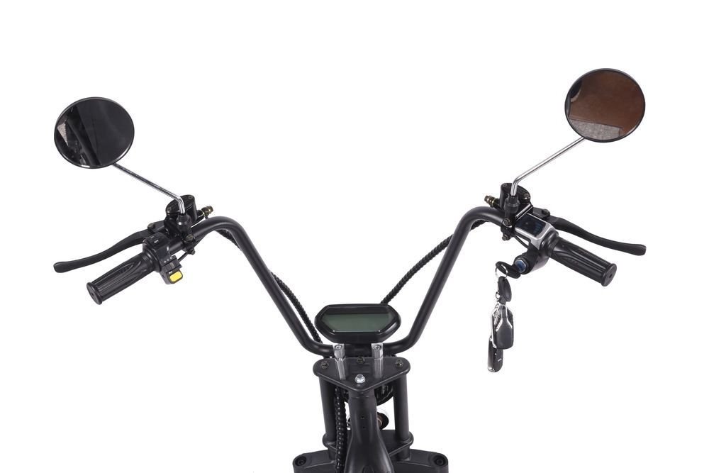 Citycoco Kugoo C3 Pro оборудован большим сиденьем и амортизаторами как спереди, так и сзади, что обеспечивает комфортную езду даже по неровным поверхностям. Дисплей на руле показывает основную информацию о скорости и уровне заряда батареи, что делает управление скутером более удобным.