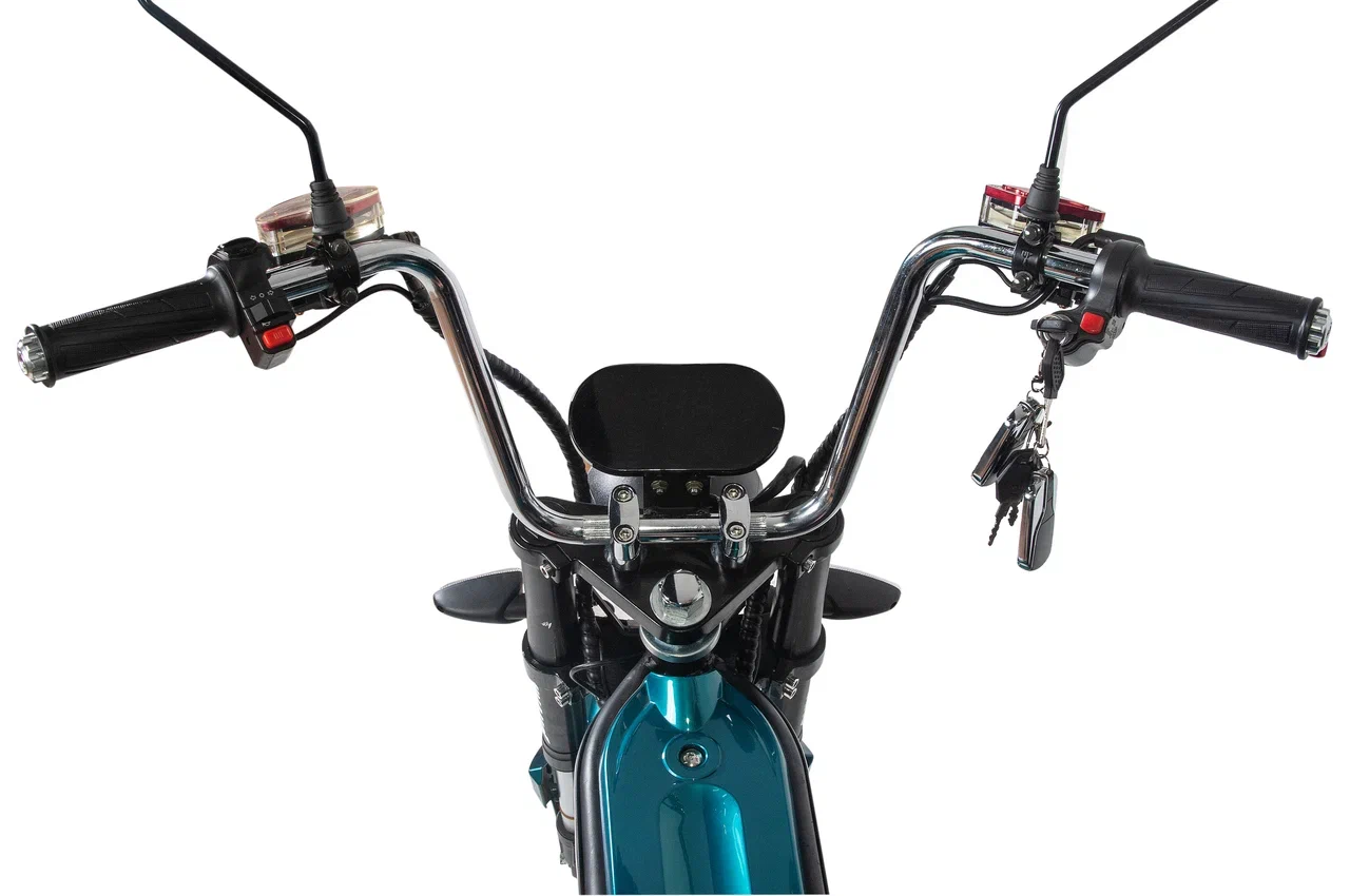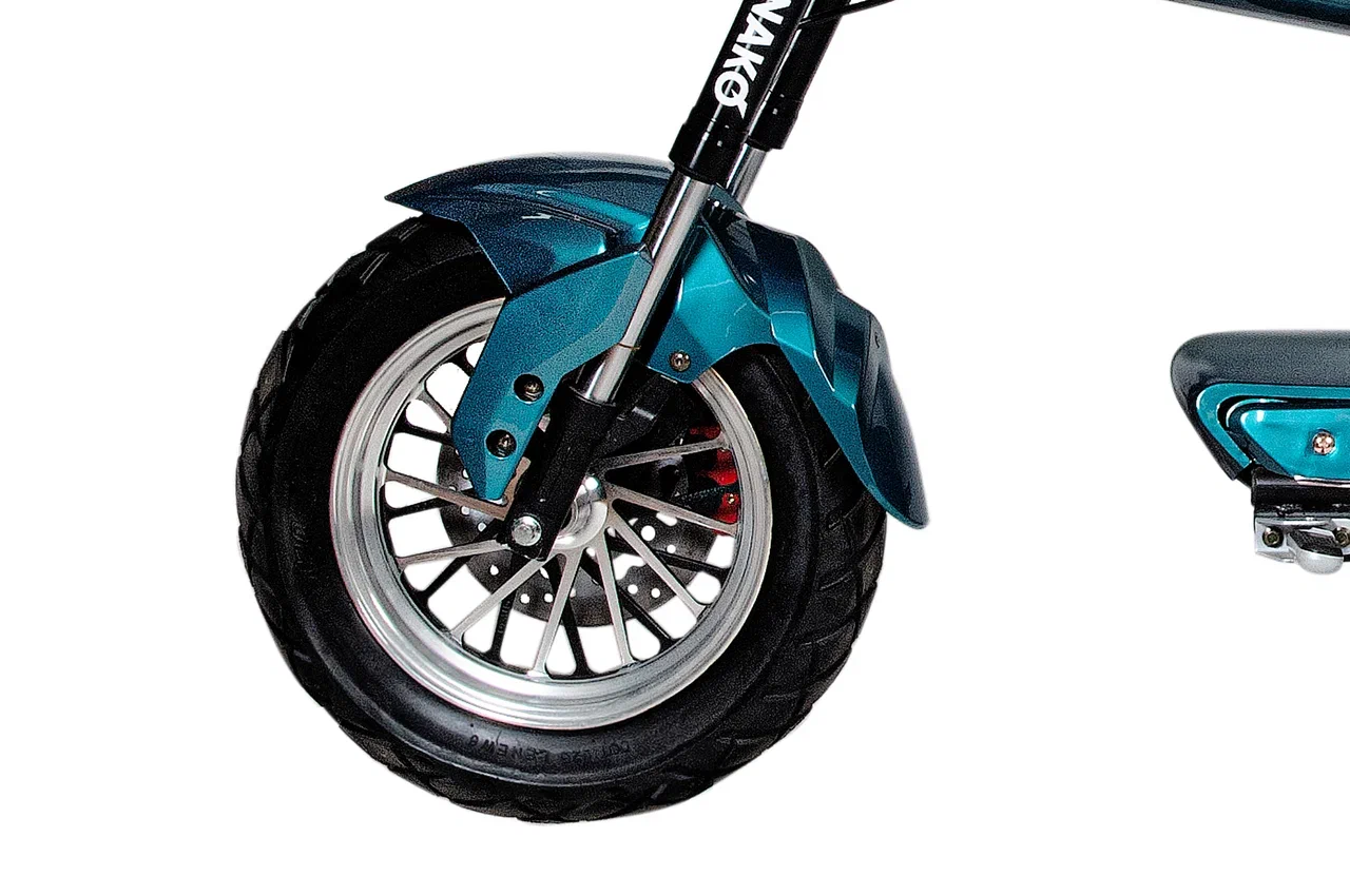 Minako Italy оснащен комфортабельным сиденьем и амортизаторами, что обеспечивает плавную езду даже по неровным дорогам. Удобный дисплей на руле информирует о текущей скорости и уровне заряда, что значительно упрощает управление. Скутер также включает подножку для удобной парковки и мощную фару для безопасного передвижения в темное время суток.
