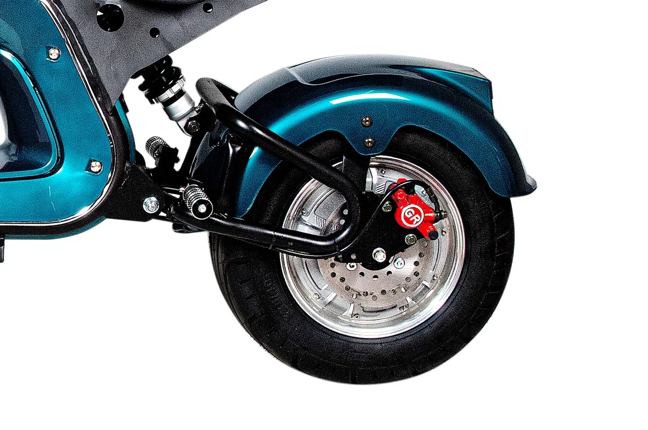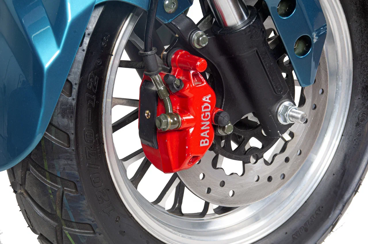 Электроскутер обеспечивает высокий уровень безопасности благодаря звуковому сигналу и надежной сигнализации. Гидравлические тормоза гарантируют быстрое и эффективное торможение, что особенно важно при высоких скоростях. Время зарядки аккумулятора составляет около 10 часов, что позволяет быстро подготовить скутер к использованию.