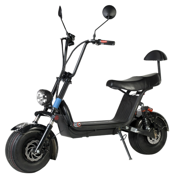 - Двойное сиденье — на электроскутере можно кататься вдвоем. Для пассажира есть удобная спинка сзади.