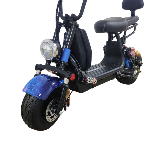 - От брызг с дороги спасут крылья на колесах, которые полностью их закрывают. Ваша одежда всегда будет чистой после поездки, поэтому смело решайтесь купить электроскутер, чтобы добираться на работу.