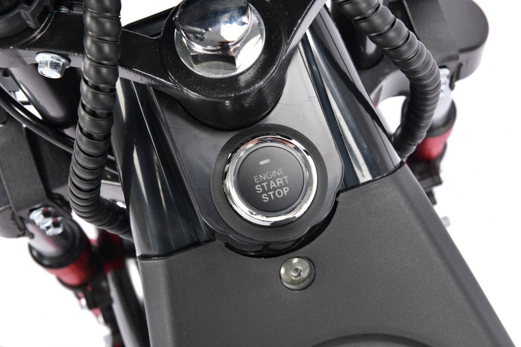 Обратите внимание на ручки газа, которые выполнены из алюминия, стильно покрашенного в красный цвет, и имеют прослойку из каучука. Настраиваемые ручки тормоза позволят Вам подобрать идеально удобное положение. Интуитивно понятные кнопки переключения скоростей и света выполнены в классическом стиле.