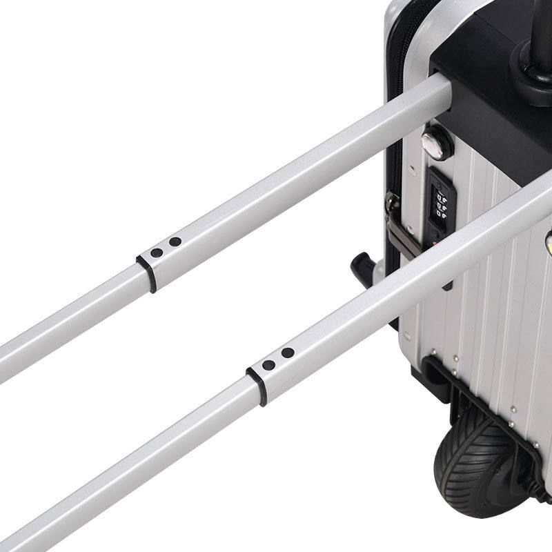 Скутер оснащен регулируемой ручкой высотой 25 см, что позволяет легко подстраивать его под индивидуальные параметры пользователя. Размеры чемодана составляют 50х20х30 см, а в сложенном виде он занимает всего 60х30х57 см, что делает его удобным для транспортировки. Быстросъемная батарея позволяет легко менять аккумулятор, если это необходимо, без лишних затрат времени.
