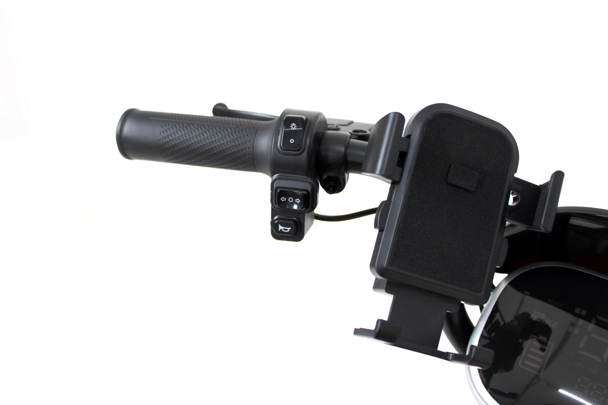 Электроскутер оборудован дисковыми гидравлическими тормозами как спереди, так и сзади, что обеспечивает высокую эффективность торможения и безопасность при движении. Это особенно важно в условиях интенсивного городского трафика, где необходимо быстро реагировать на изменения ситуации на дороге.