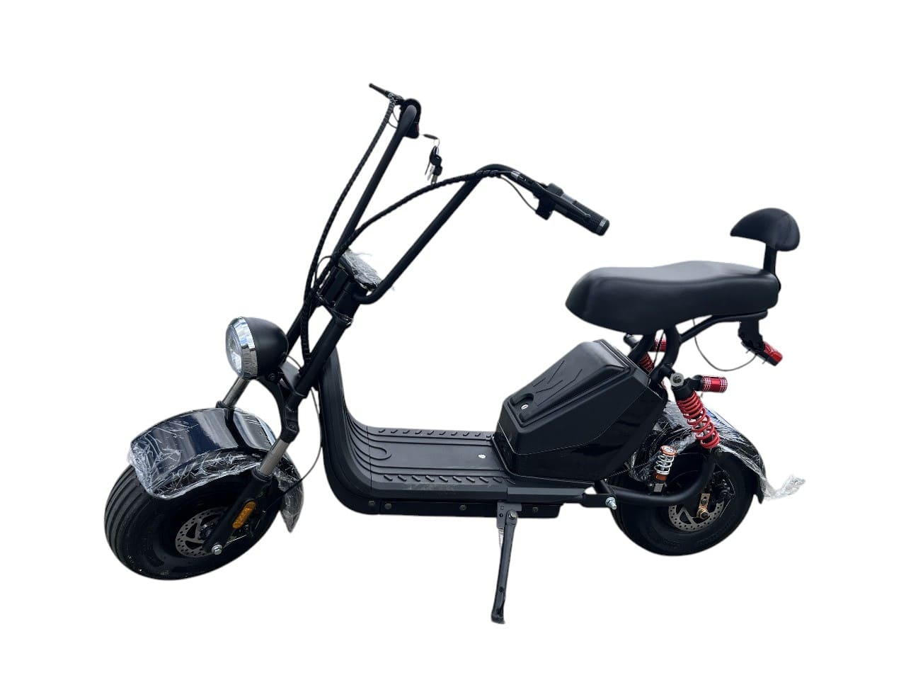 Электроскутер оснащен надежными дисковыми тормозами, которые обеспечивают отличное торможение в любых условиях. Передние и задние амортизаторы обеспечивают плавный ход, сглаживая неровности дороги и повышая комфорт во время поездок.