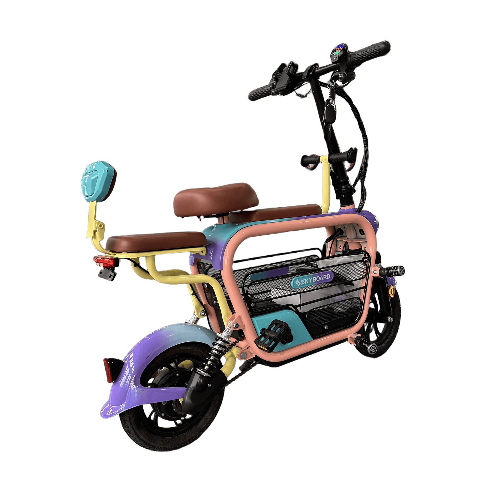 С высотой сиденья 690 мм, этот электроскутер подходит для пользователей разного роста. Максимальная нагрузка до 100 кг позволяет перевозить дополнительные грузы или пассажиров без проблем, что делает его универсальным решением для города.