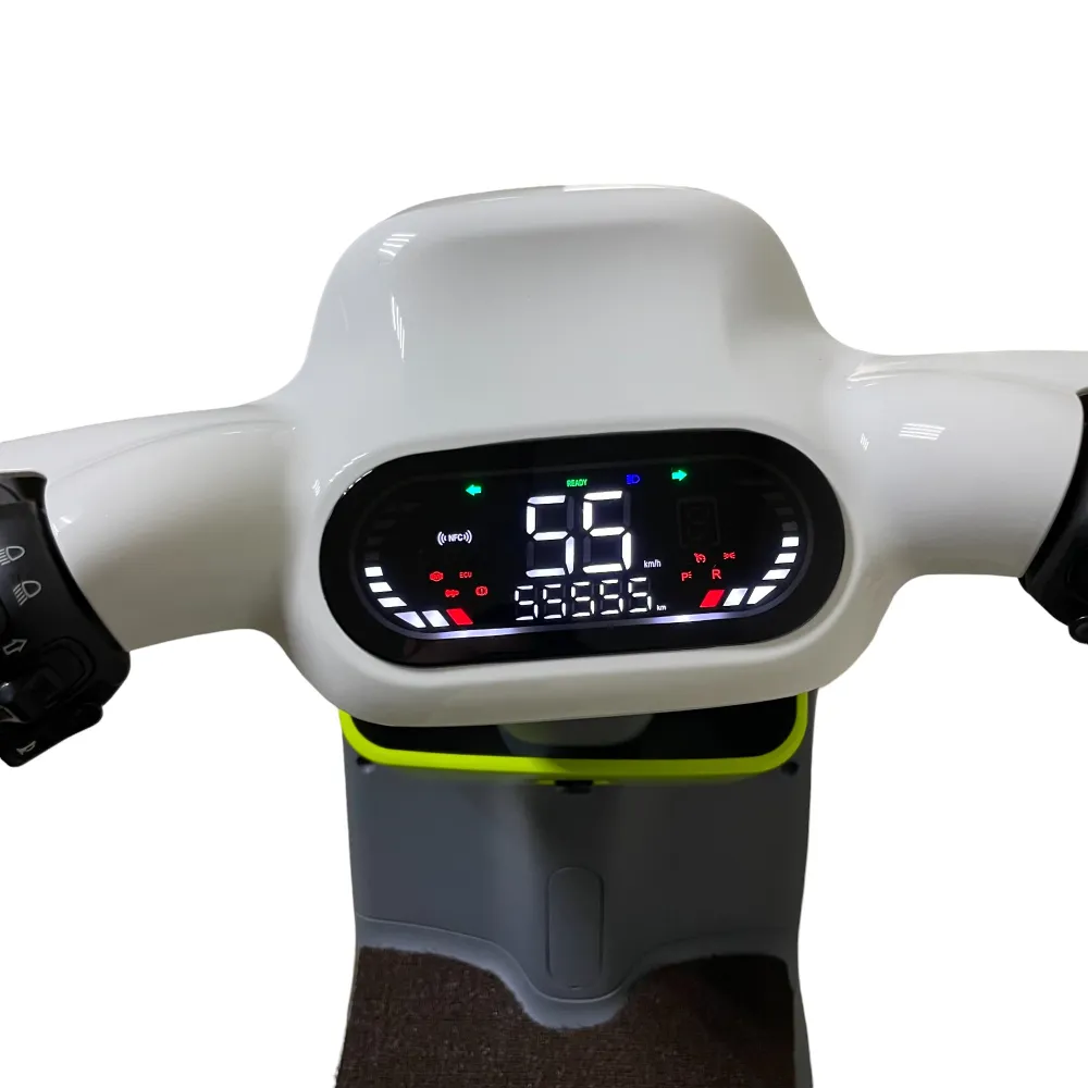 Электронный замок и кнопка запуска с NFC добавляют уровень безопасности, а ЖК-дисплей информирует вас о состоянии батареи и других параметрах. Передние и задние LED-фары, а также поворотники обеспечивают отличную видимость в темное время суток, что делает поездки безопаснее.