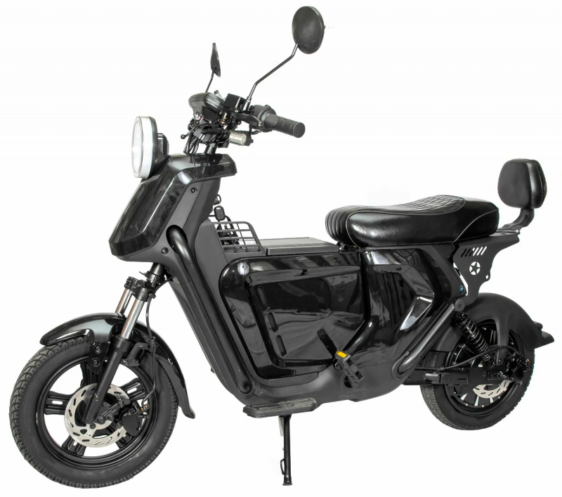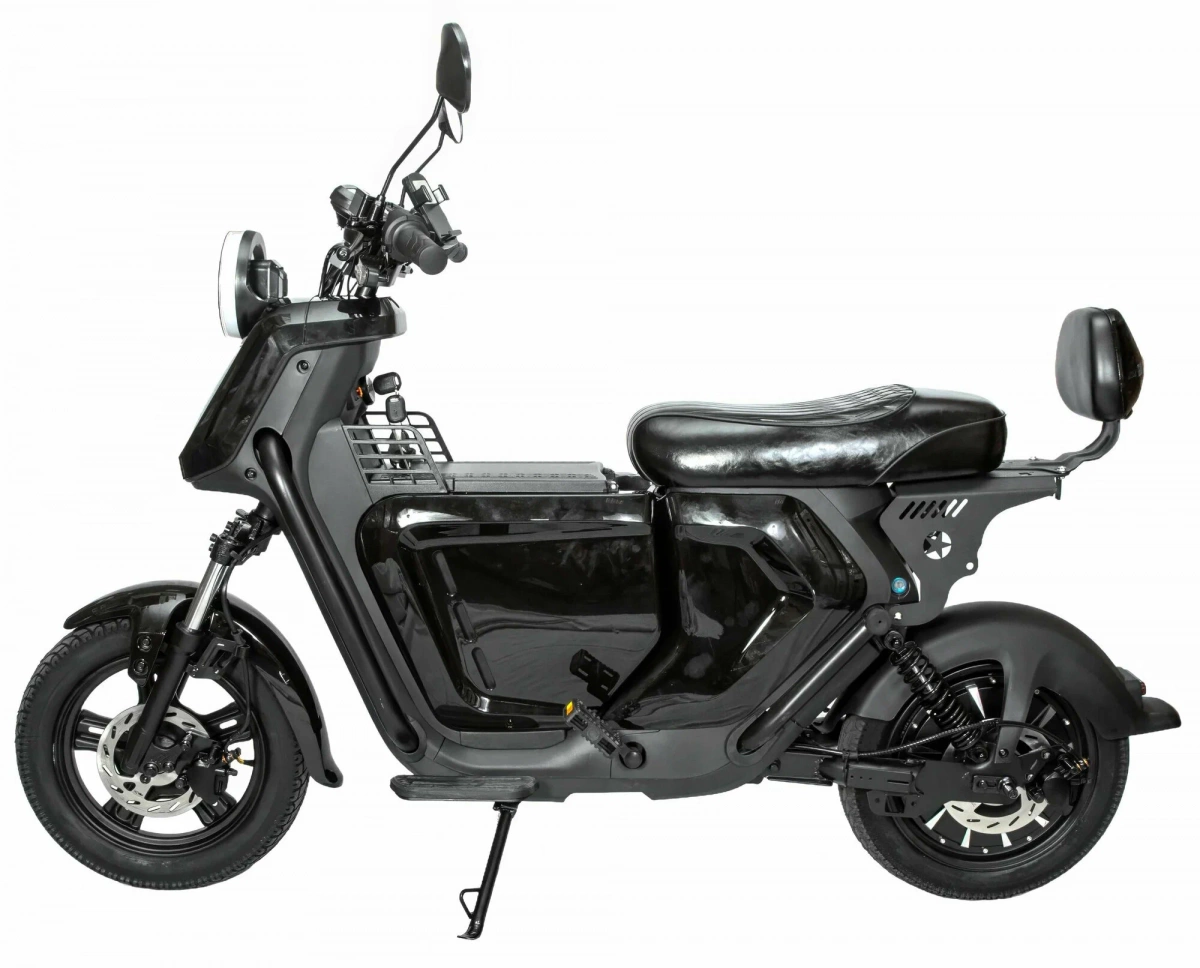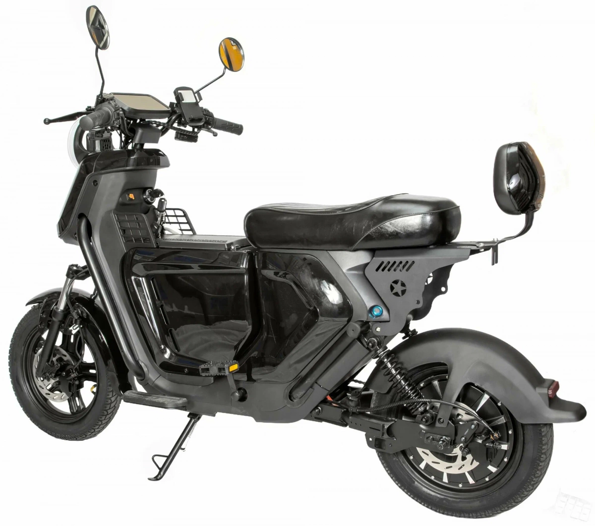 Электроскутер оборудован сиденьем и подножкой для дополнительного комфорта. Корпус выполнен из стали, что обеспечивает прочность и долговечность конструкции. Дисплей позволяет отслеживать важные параметры во время поездки, а передние и задние поворотники обеспечивают безопасность на дороге.