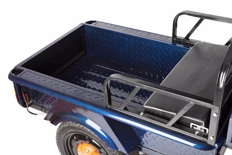 Это значит, что если вы решите заказать грузовую электрическую тележку D1 60V 900W, то приобретете полноценный грузовой транспорт, который сможете использовать в течение целого дня. Поставьте его на зарядку ночью, а утром он снова будет готов к работе. Может использоваться 2 людьми сразу, так как имеет дополнительное сиденье.
