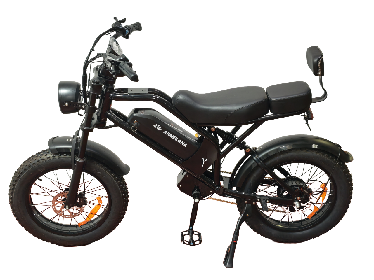 Электровелосипед Armelona AR-17 (G52) оснащен 20-дюймовыми спицевыми колесами, которые обеспечивают хорошую маневренность в городских условиях и комфортное преодоление дорожных неровностей. Спицевая конструкция позволяет производить локальный ремонт при повреждении без замены всего колеса, что снижает эксплуатационные расходы. Габариты в рабочем состоянии составляют 170×70×115 см, обеспечивая устойчивость и удобную посадку водителя.