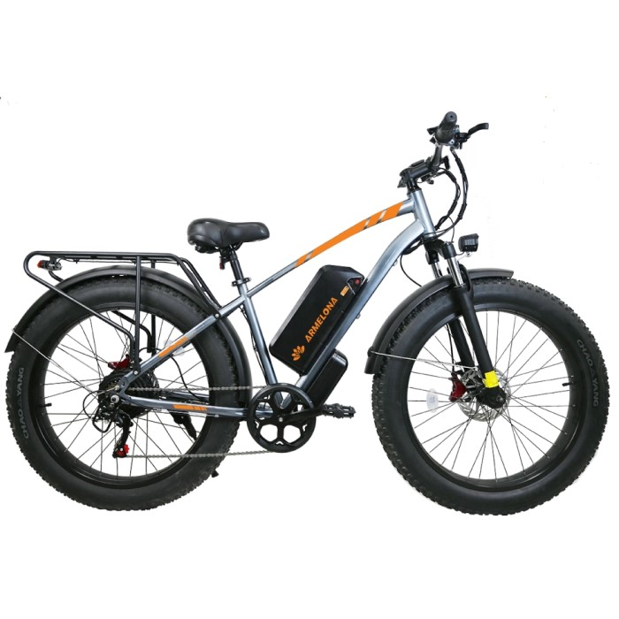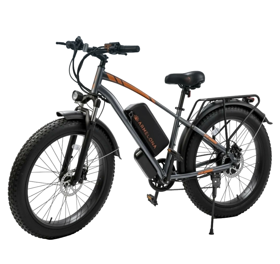 Электровелосипед Armelona AR-5 оснащен 26-дюймовыми спицевыми колесами, которые обеспечивают отличный накат и уверенное поведение на любых типах дорожного покрытия. Увеличенный диаметр колес способствует лучшей устойчивости при движении на скорости и снижает утомляемость водителя за счет меньшего количества передаваемых вибраций. Вес велосипеда составляет 36.8 кг, что является отличным показателем для модели с мощным двигателем и усиленной рамой.