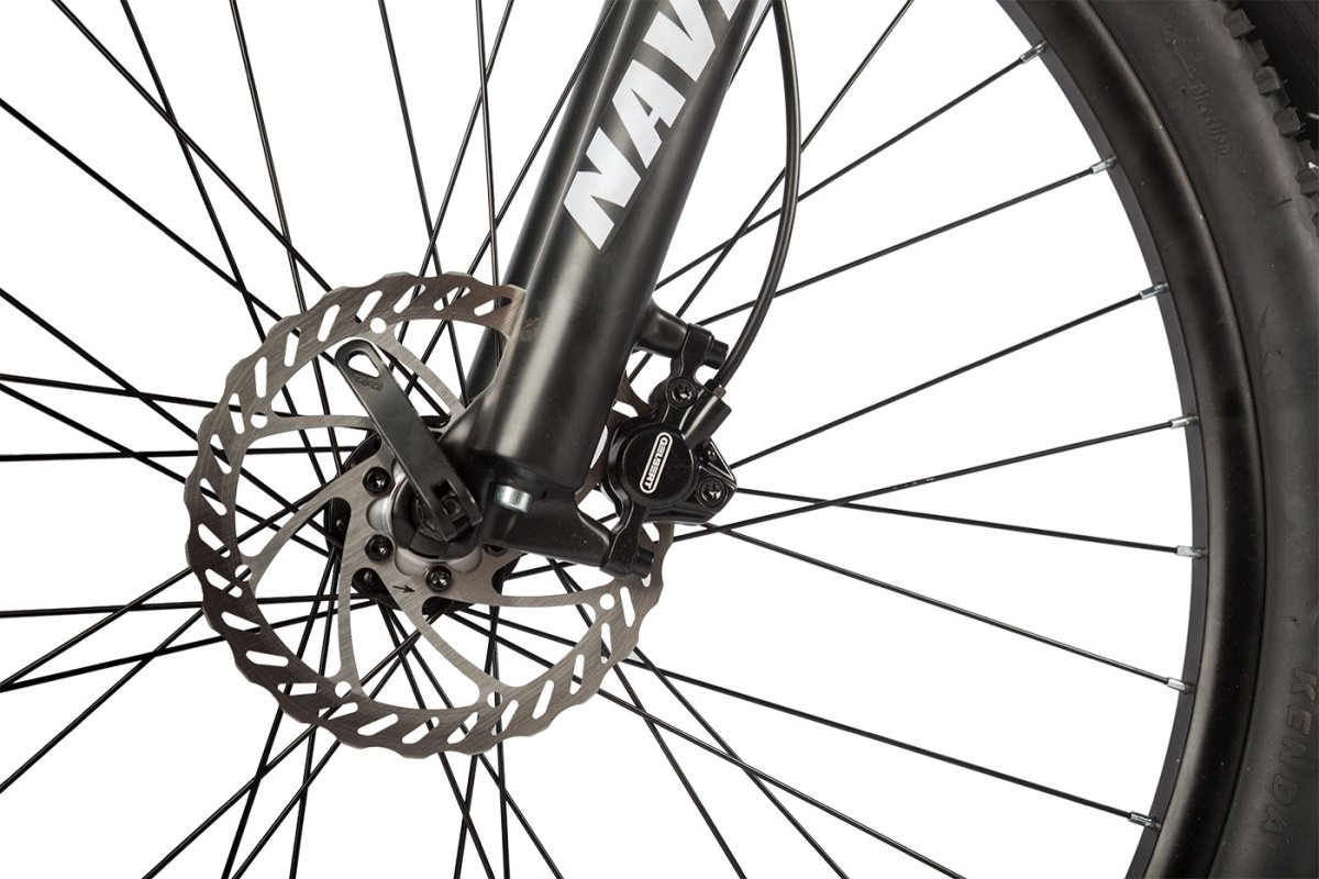 Электровелосипед оснащен дисковыми гидравлическими тормозами, которые обеспечивают высокую эффективность торможения и повышают безопасность на дороге. Эта система идеально подходит для разнообразных условий эксплуатации.