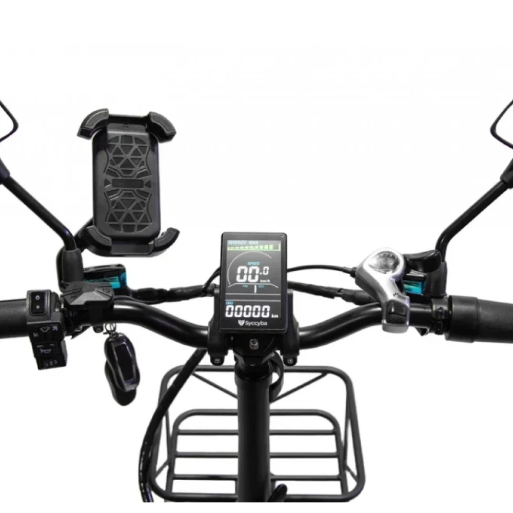 Syccyba H2 DUAL также оборудован бортовым компьютером, который предоставляет важную информацию о текущей скорости, пробеге и состоянии аккумулятора. Наличие фар и ходовых огней значительно повышает видимость в темное время суток, а корзина добавляет удобства, позволяя легко перевозить личные вещи и покупки.