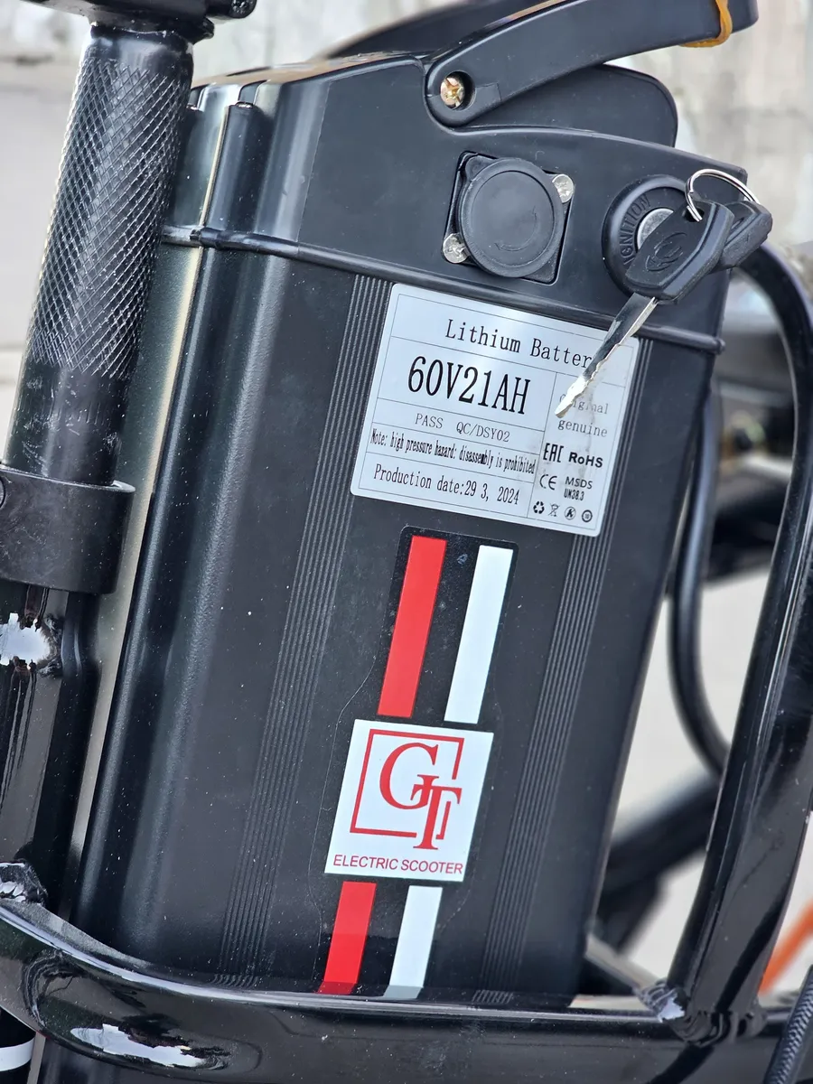 Аккумулятор ёмкостью 20АH 60V позволяет преодолевать расстояния до 75 км. В случае разрядки аккумулятора можно использовать как обычный велосипед и набирать скорость кручением педаль.