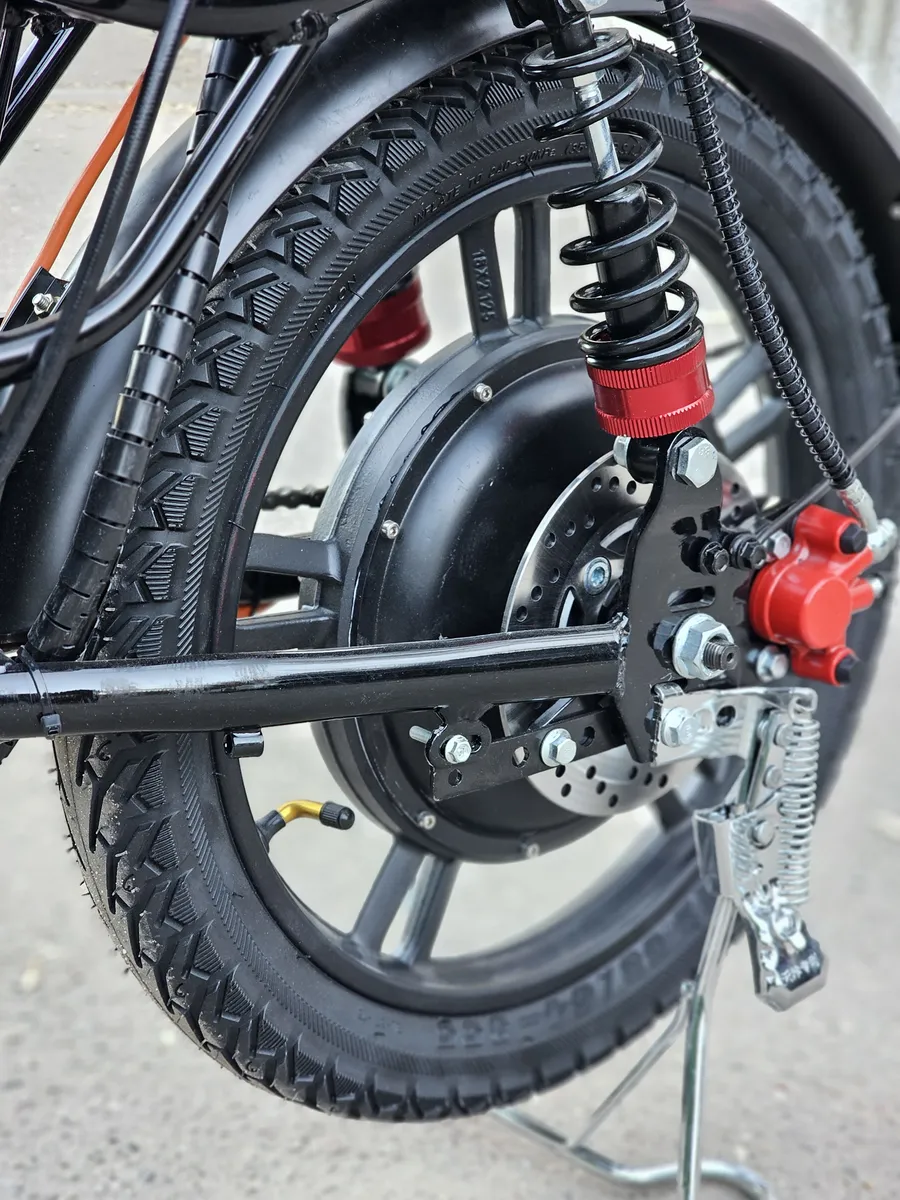Двигатель мощностью 350 Вт 60V позволяет развивать скорость до 35км/ч. и отлично тянуть в горку.
