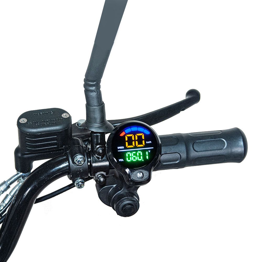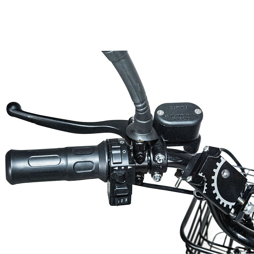 Рама электрического велосипеда выполнена из прочного алюминия. Велосипед оснащен качественными гидравлическими тормозами, которые работают точно и плавно, обеспечивая безопасность и комфорт при торможении. Амортизационная вилка позволяет плавно преодолевать неровности дороги, повышает маневренность велосипеда и поглощает все удары при торможении.