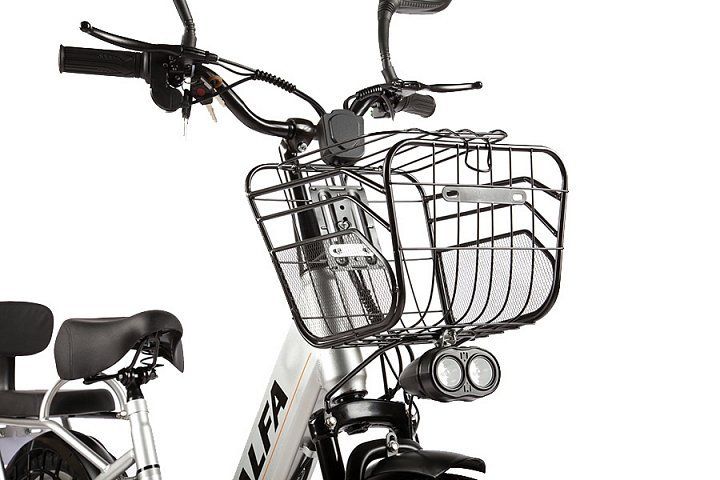 - Модель E-Alfa отличается завидной выносливостью и способна спокойно перевозить до 130 килограммов груза, включающих седока и поклажу. Такие высокие нагрузки по силам электровелосипеду E-Alfa благодаря массивной стальной low-step раме (в широкой трубе которой скрывается 48-вольтная литиевая аккумуляторная батарея емкостью 9Ah), и мощному багажнику.
