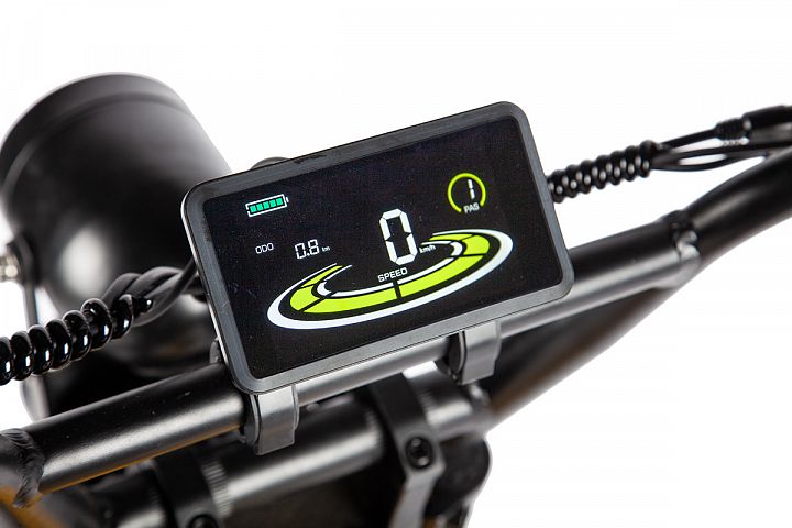 Дисковые гидравлические тормоза безотказно и быстро остановят фэтбайк не только на асфальте, но и на скользком льду, и на песке, а большой цветной светодиодный дисплей обладает прекрасной читаемостью при любом освещении и выводит всю необходимую в поездке информацию.