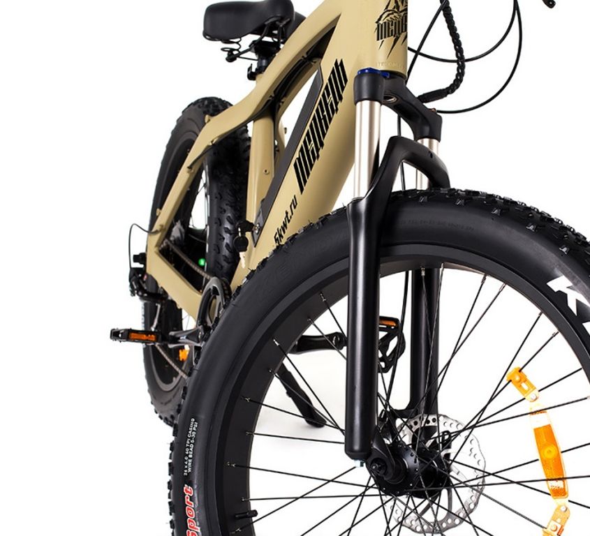 - Широкие комфортные шины фэтбайка, можно использовать одинаково эффективно в городе и на бездорожье.